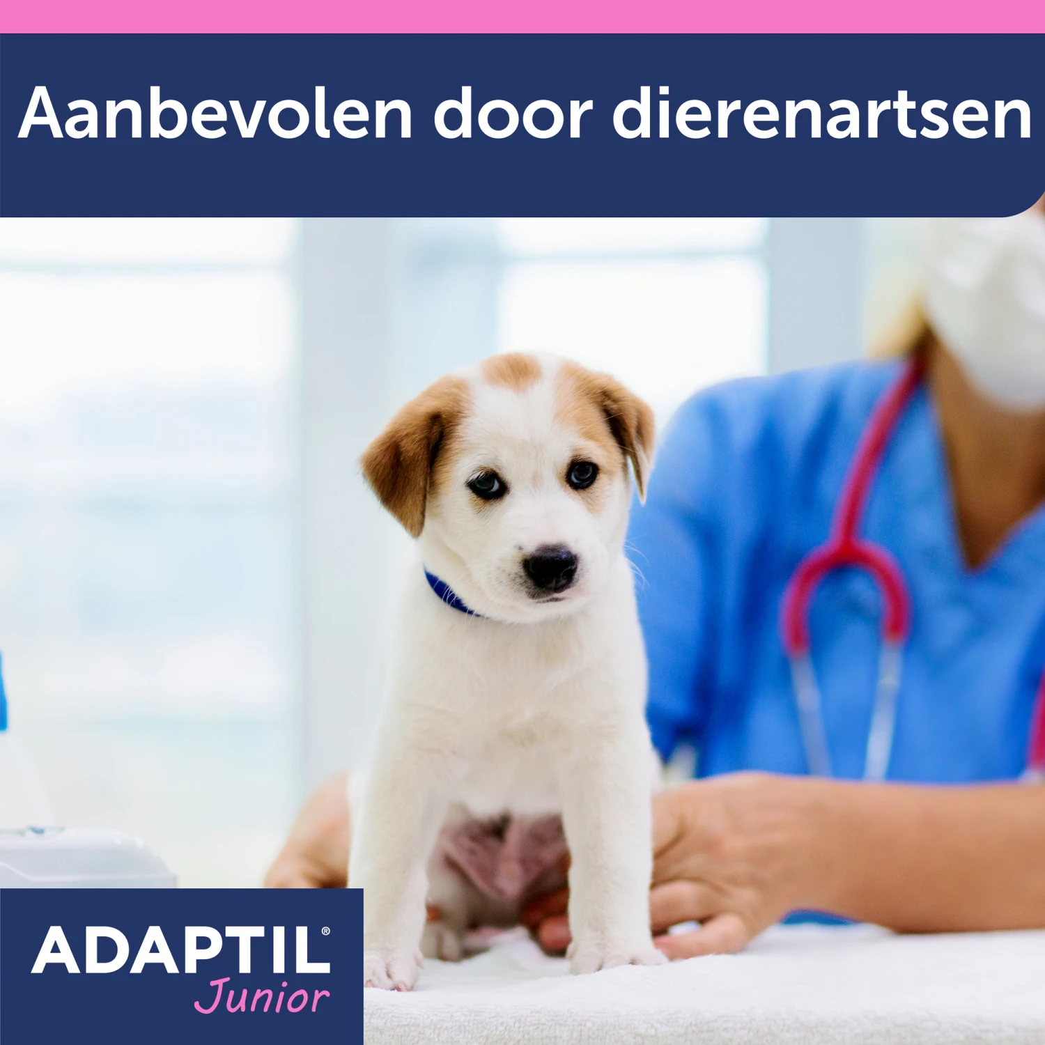 Adaptil Junior is een halsband die geruststellende feromonen afgeeft aan uw puppie. Het helpt uw pup om te wennen aan zijn of haar nieuwe huisje en alle nieuwe indrukken die opgedaan worden. De moederhond geeft deze feromonen ook af om haar pups rustig en veilig te laten voelen.