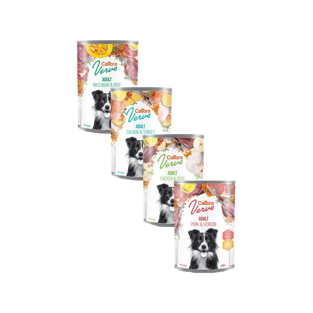 wild zwijn (44 %), rundvlees (26 %), pompoen (4 %), wortel (4 %), plantaardige bijproducten (2,7 %), zalmolie (1,5 %), gedroogde rozenbottel (0,5 %), gedroogd duindoorn (0,5 %), gedroogde cichorei (0,3 %), gedroogde rozemarijn (0,05 %), gedroogde tijm (0,05 %)