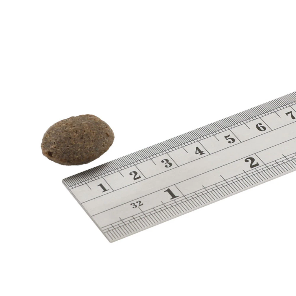Ruw eiwit 26%, vetgehalte 12%, ruwe as 7,5%, ruwe vezels 2,5%, omega 3 vetten 1%.
