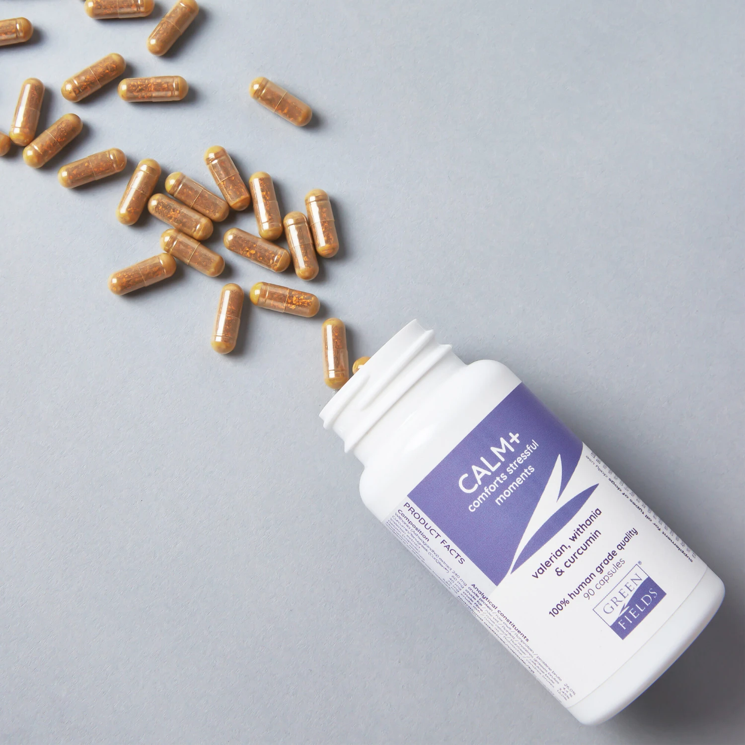 De Greenfields Calm+ is een capsule die speciaal ontwikkeld is om uw hond te kalmeren tijdens stressvolle situaties. Net zoals mensen, kunnen honden ook te maken krijgen met extreme stress. Bij honden heeft deze stress vaak een duidelijke oorzaak. Veel eigenaren merken bijvoorbeeld dat hun hond onrustig wordt bij vreemde, een bezoek aan de dierenarts, tijdens het reizen, een lange autorit, door vuurwerk of andere harde geluiden. Om te voorkomen dat de stress de overhand neemt en uw hond een onprettige ervaring krijgt, geeft u hem een Greenfields Calm+ capsule. Deze capsule is samengesteld uit gepatenteerde ingrediënten en is veilig om toe te dienen aan honden van alle leeftijden, waaronder puppy’s. De capsules zijn samengesteld met Valeriaan & Withania, CurQfen en vitamine B6 en B9.