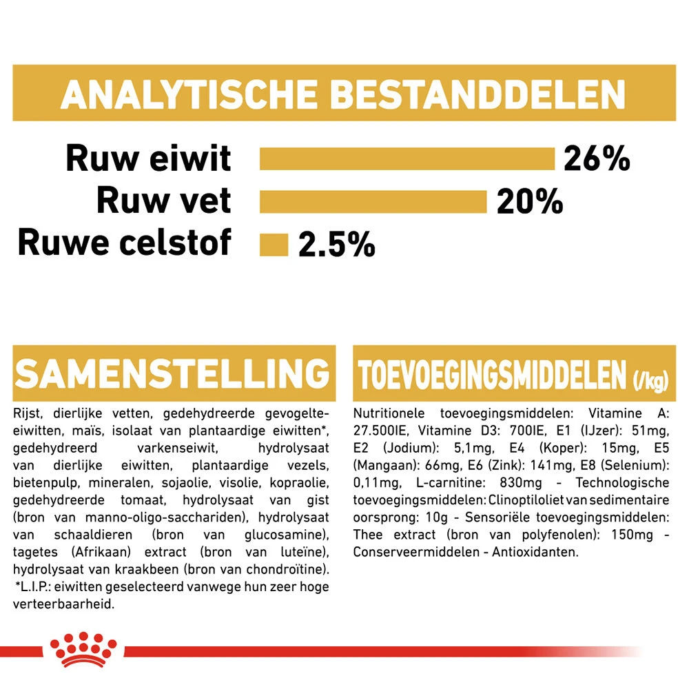 Royal Canin Boxer Adult ondergaat momenteel een verpakkingswijziging. De samenstelling van dit product is hetzelfde gebleven.