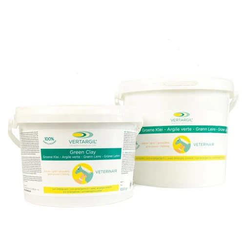 Groene Leem bevordert o.a. de doorstroming van het bloed. Daarnaast remt het vervuilende processen in het lichaam en verzacht en ontspant het de huid. Groene leem ondersteunt het immuunsysteem en kan ingezet worden voor de intensieve verzorging van de huid. Vertargil Grof is een aanmaakpoeder en geschikt voor paarden en honden.