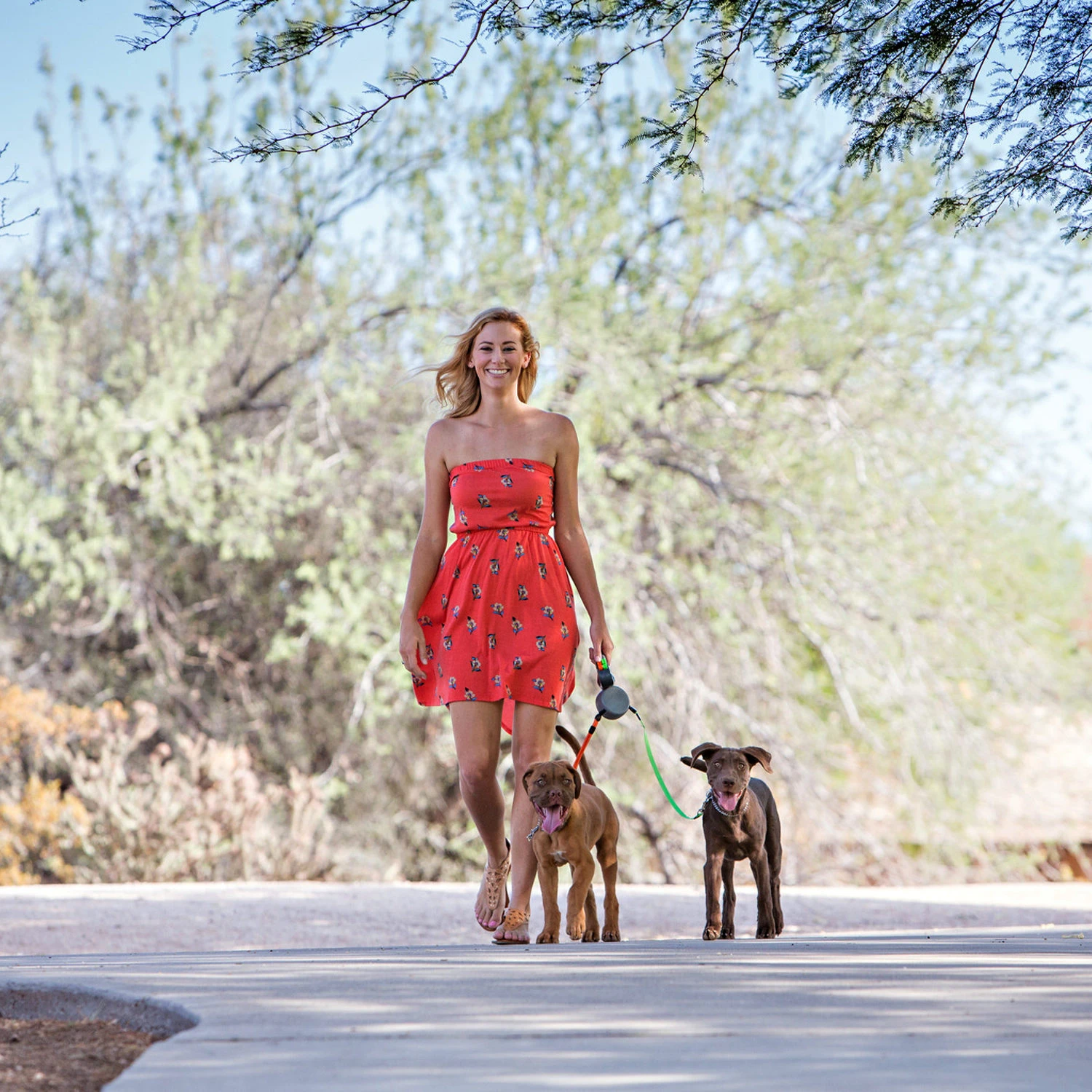 - Twee honden tegelijk uitlaten, zonder knopen